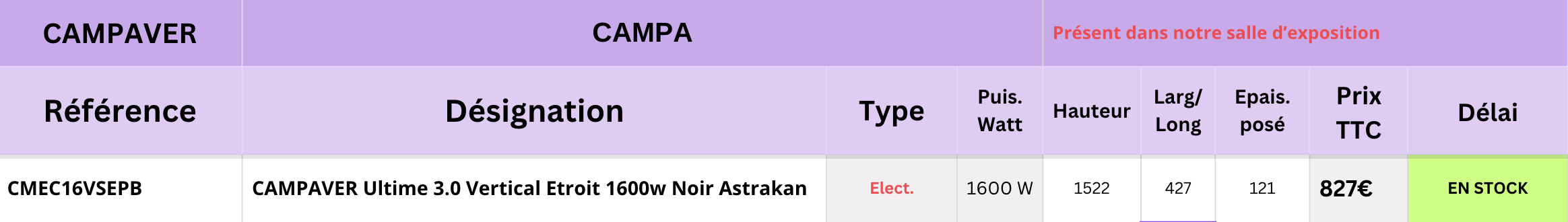 CAMPAVER ULTIME Etroit vertical de CAMPA est un radiateur rayonnant à inertie verre pilotée, fonctionnel et raffiné, aux qualités incomparables.