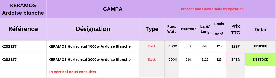 Le radiateur électrique KERAMOS Marbre blanc à inertie céramique Horizontal de CAMPA radiateur à inertie, fonctionnel et raffiné, aux qualités incomparables.