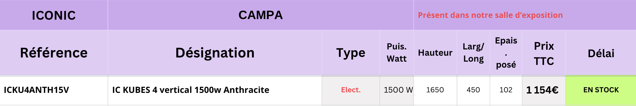 Radiateur électrique KUBES de chez Campa la finition très raffinée de sa façade acier et son dessin inédit ne vous laissera pas indifférent.