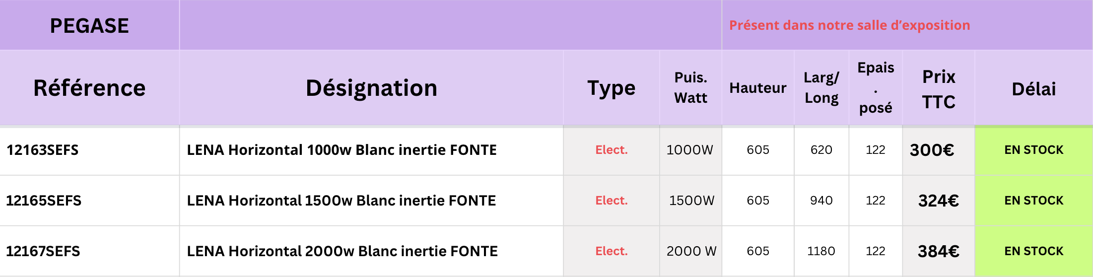 RADIATEUR LENA HORIZONTAL BLANC Le corps de chauffe en fonte active apporte un réel cocon de douceur. Le boîtier de commande est simple d'utilisation : touche à mémoire de confort et fonctions à économies d'énergie, tel que la détection de fenêtre ouverte.